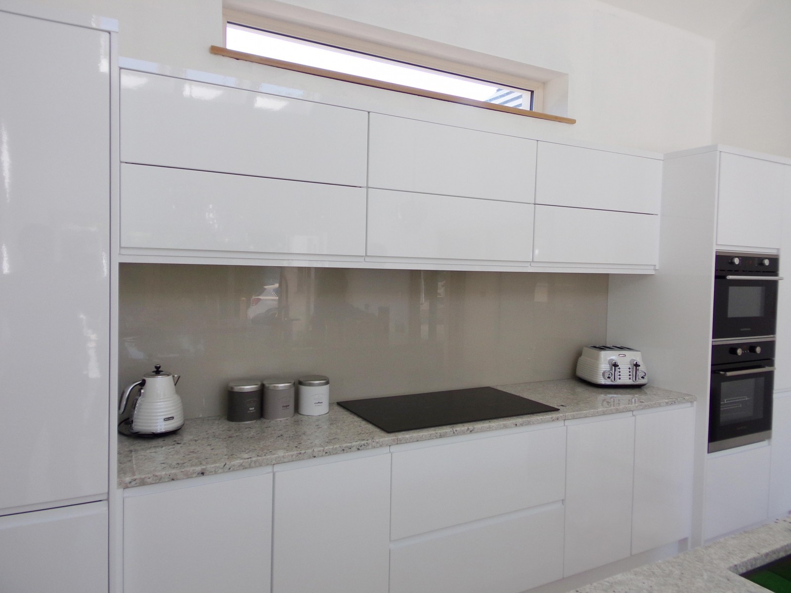 Our painted cappuccino glass splashbacks are made from 6mm toughened opti clear glass, and are polished on all edges. There is a minimum charge of £55.00 for any painted kitchen glass splashback under 0.25 square meters. For this cream splashback we use the Farrow & Ball Elephant's Breath paint colour; if you prefer you can choose any shade or colour on our Painted Splashback page - Click Here