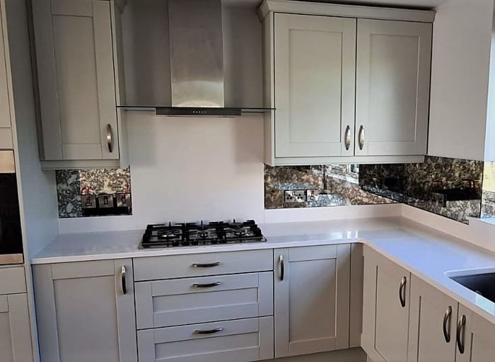Mirror Splashbacks are not made from toughened glass and therefore installing in close proximity a cooker hob is not recommended.