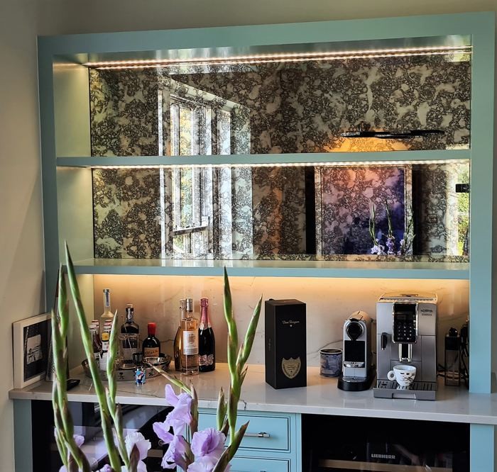 Our Aura 3 Antique Light mirror glass splashbacks are made from 6mm opti clear glass, and are polished on all edges.